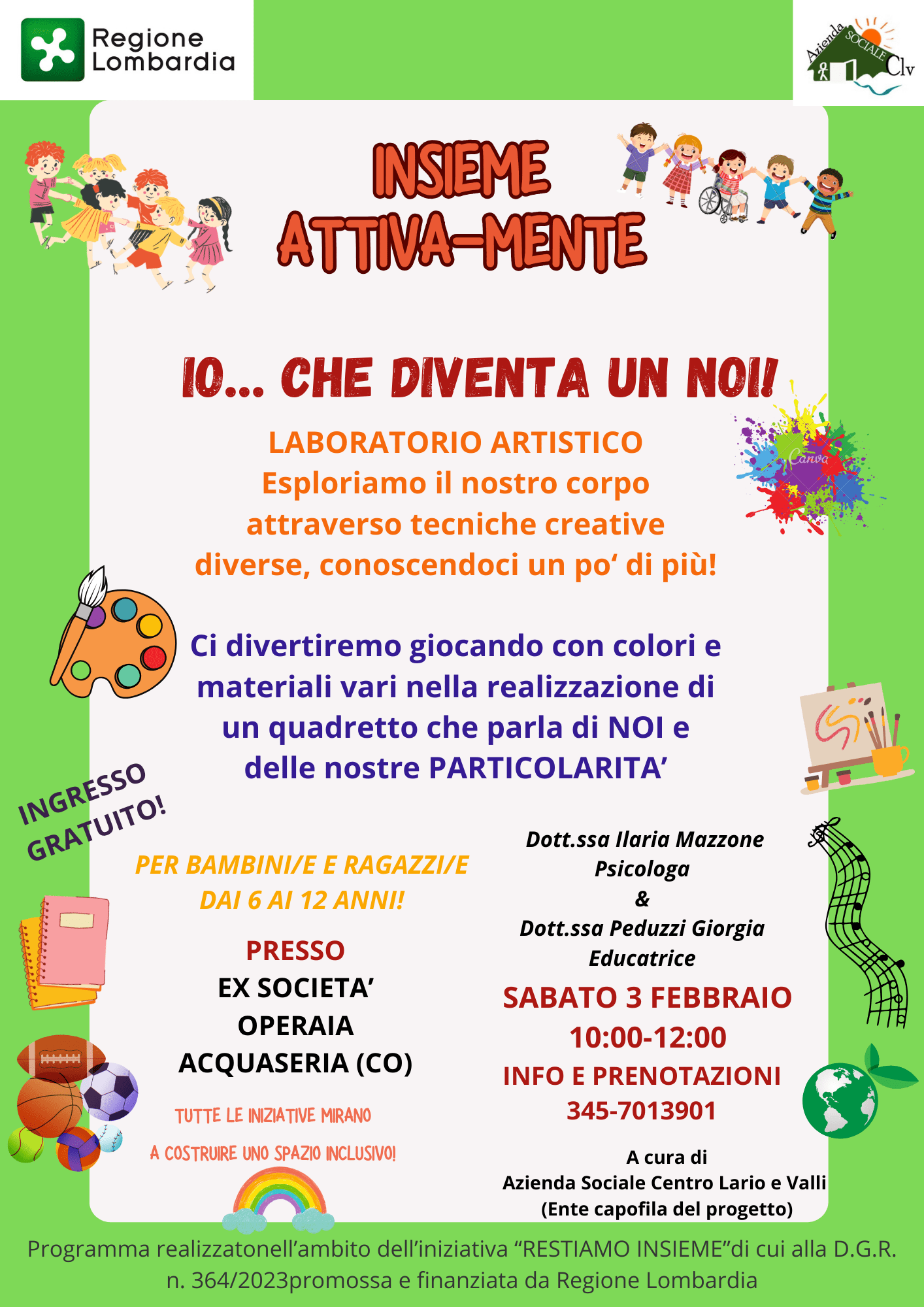 In allegato qui sotto locandina relativa a evento dedicato a bambini e adolescenti organizzati dall’Azienda sociale del Centro Lario e Valli. Per maggiori informazioni vedi allegato sotto riportato.