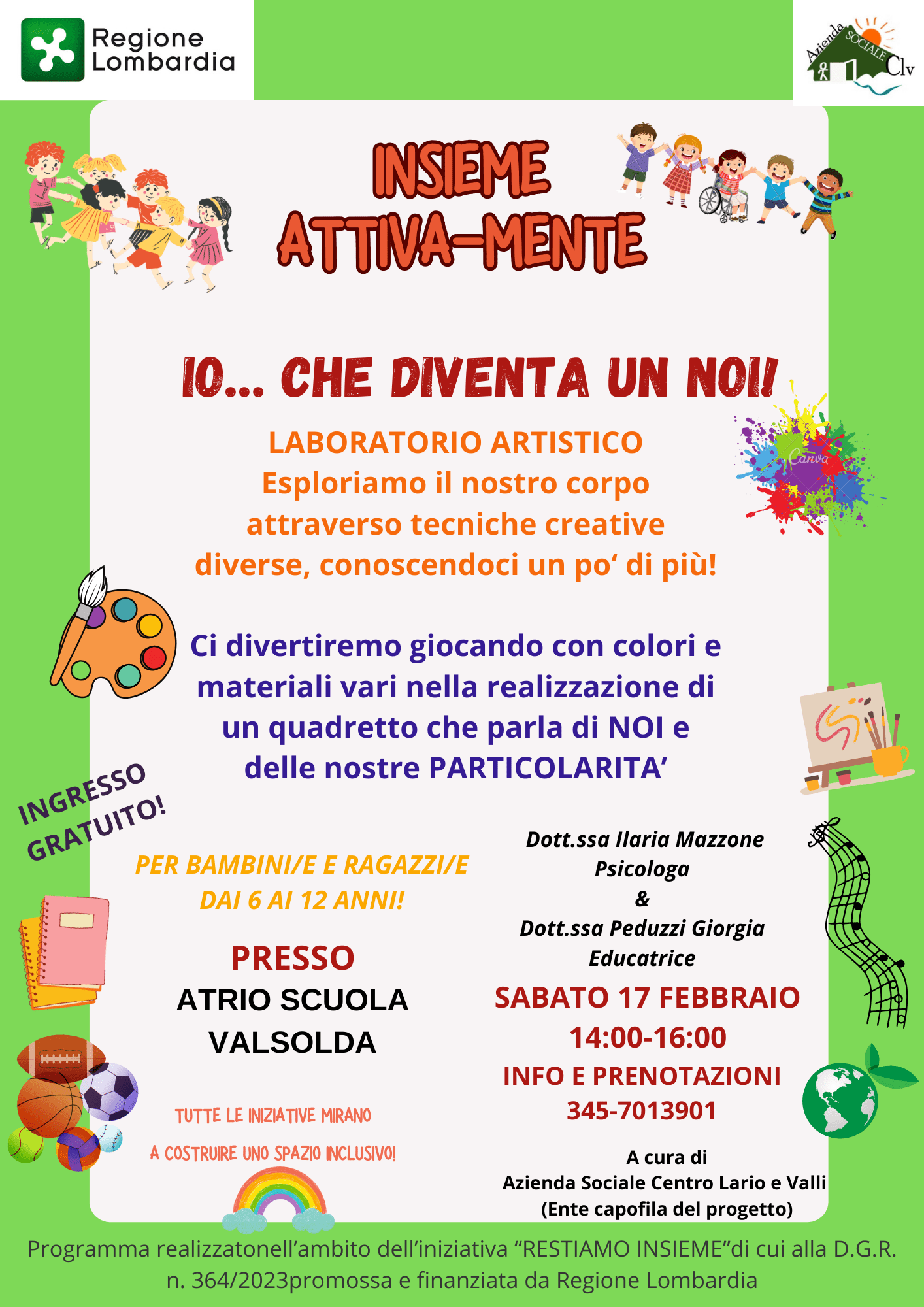 In allegato qui sotto locandina relativa a evento dedicato a bambini e adolescenti organizzati dall’Azienda sociale del Centro Lario e Valli. Per maggiori informazioni vedi allegato sotto riportato.