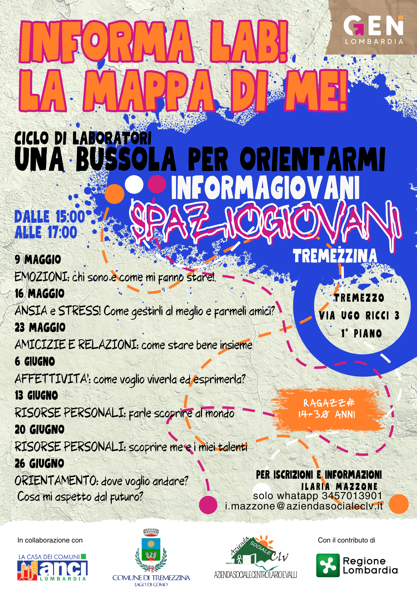 In allegato qui sotto locandina relativa a evento nel Comune di Tremezzo dedicato a ragazzi della fascia d’età tra i 13 e i 30 anni organizzati in collaborazione con l’Azienda sociale del Centro Lario e Valli. Per maggiori informazioni vedi allegato sotto riportato.